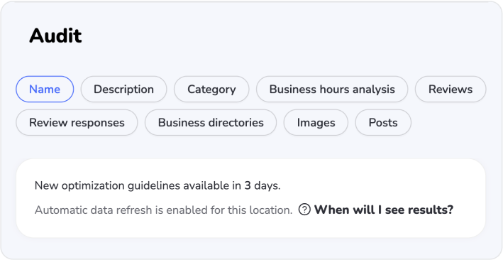 Você vai ver qual parte do perfil da empresa Google precisa ser consertada. A gente te orienta em cada passo com instruções simples, para que você só consiga melhorar.
