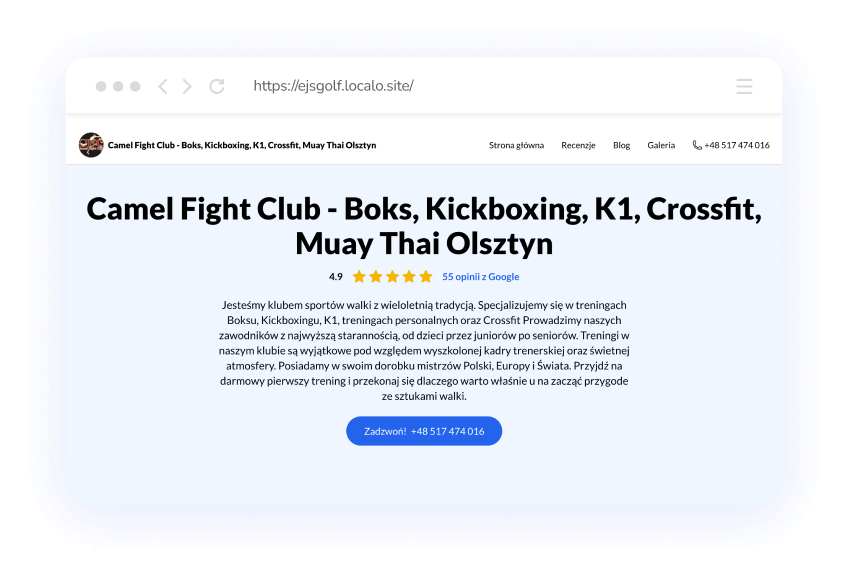Crea un sitio web profesional que atraiga a clientes locales con solo unos clics. Nuestro creador de sitios web gratuito hace el trabajo pesado por ti—extrayendo automáticamente información de tu Perfil de Empresa de Google y creando un sitio completo con tu contenido, fotos y reseñas de clientes. No se requieren conocimientos técnicos.