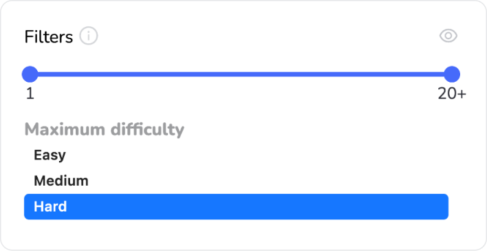 Nutzen Sie den Positionsregler und Schwierigkeitseinstellungen, um nur die Bereiche zu sehen, wo Verbesserungen am einfachsten sein werden. Perfekt zur Priorisierung von Standorten, an denen zuerst gearbeitet werden soll.