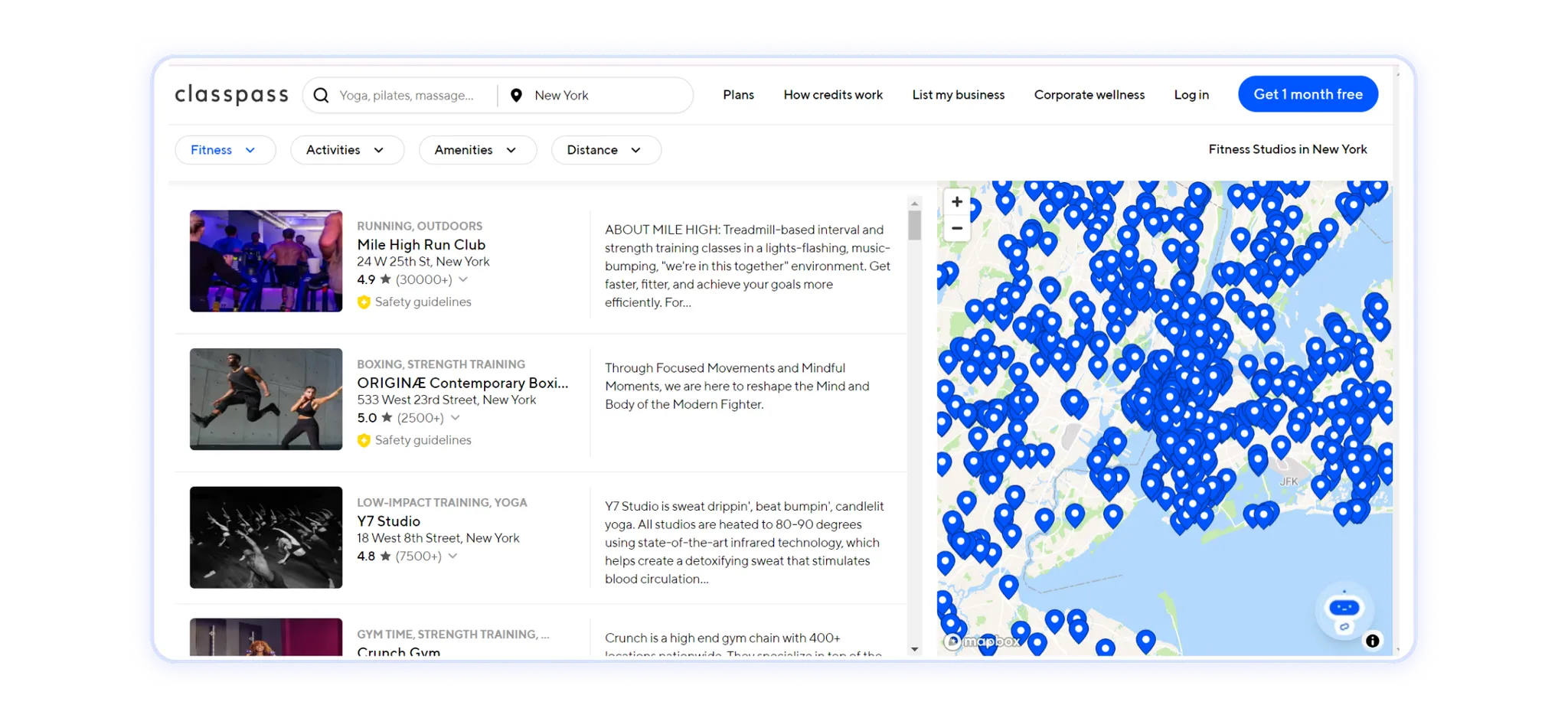 Por exemplo, se você dirige um estúdio de ioga local em Nova York e deseja melhorar sua capacidade de descoberta entre os clientes locais, liste o nome, o endereço e o número de telefone (NAP) do seu estúdio em plataformas como ClassPass ou perfil de negócios do Google. Veja como as listagens do Classpass direcionam o tráfego segmentado para os estúdios de ioga próximos: