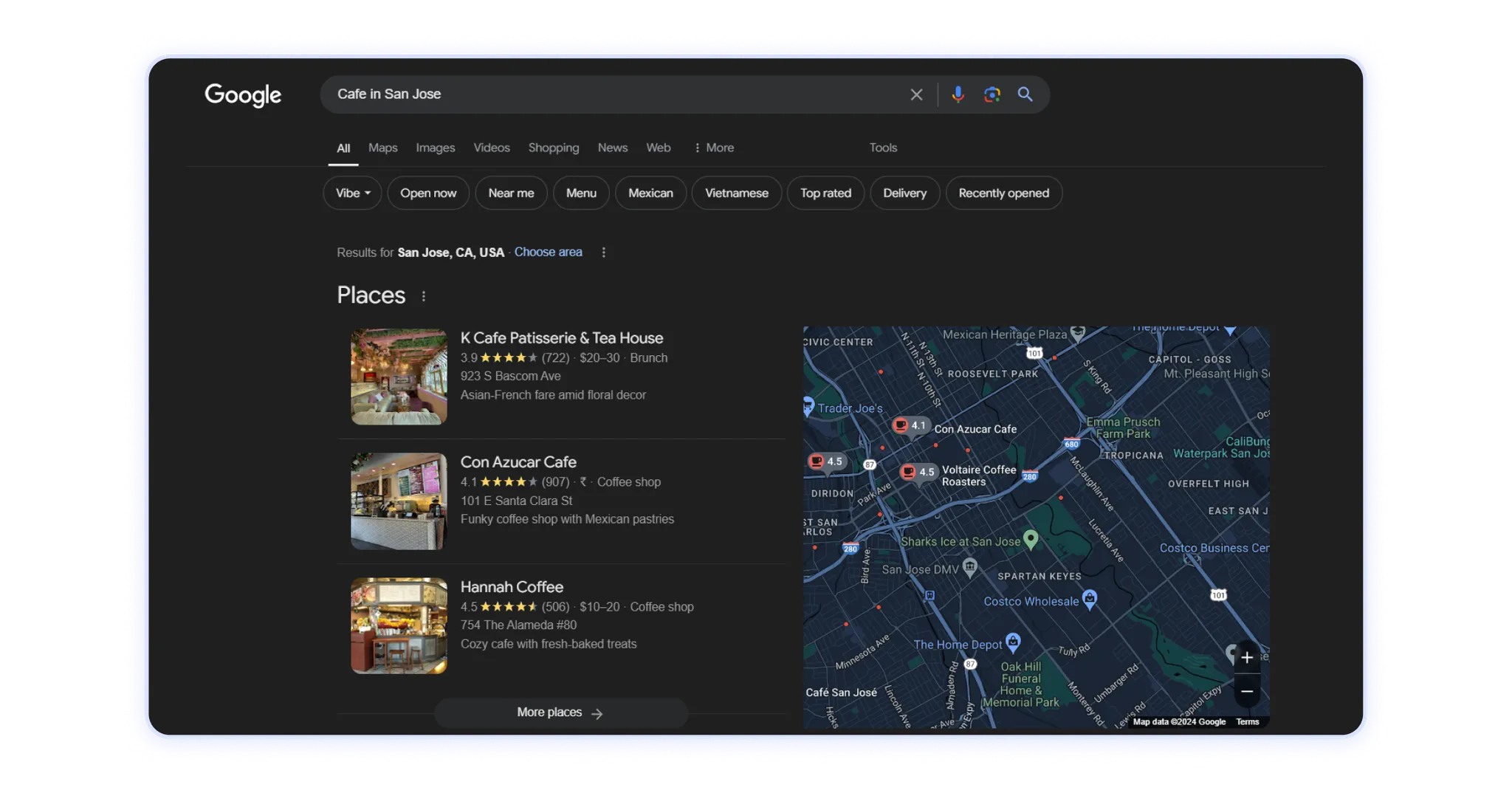 Em vez disso, ao otimizar seu website para a “melhor cafeteria em [bairro]”, você verá listagens de empresas mais altas: