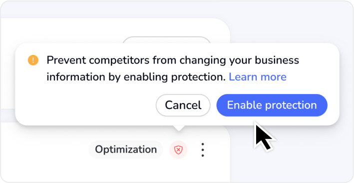 Localo monitors Google Business Profiles and stops competitors from changing their business names, numbers, addresses, or marking them closed. It’s completely automated and works in the background.