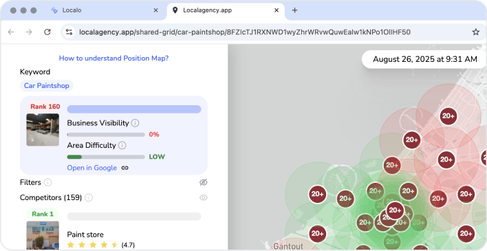 Businesses ranking 20+ for their main keywords don't realize local SEO exists. Show them exactly which competitors are getting their customers.
