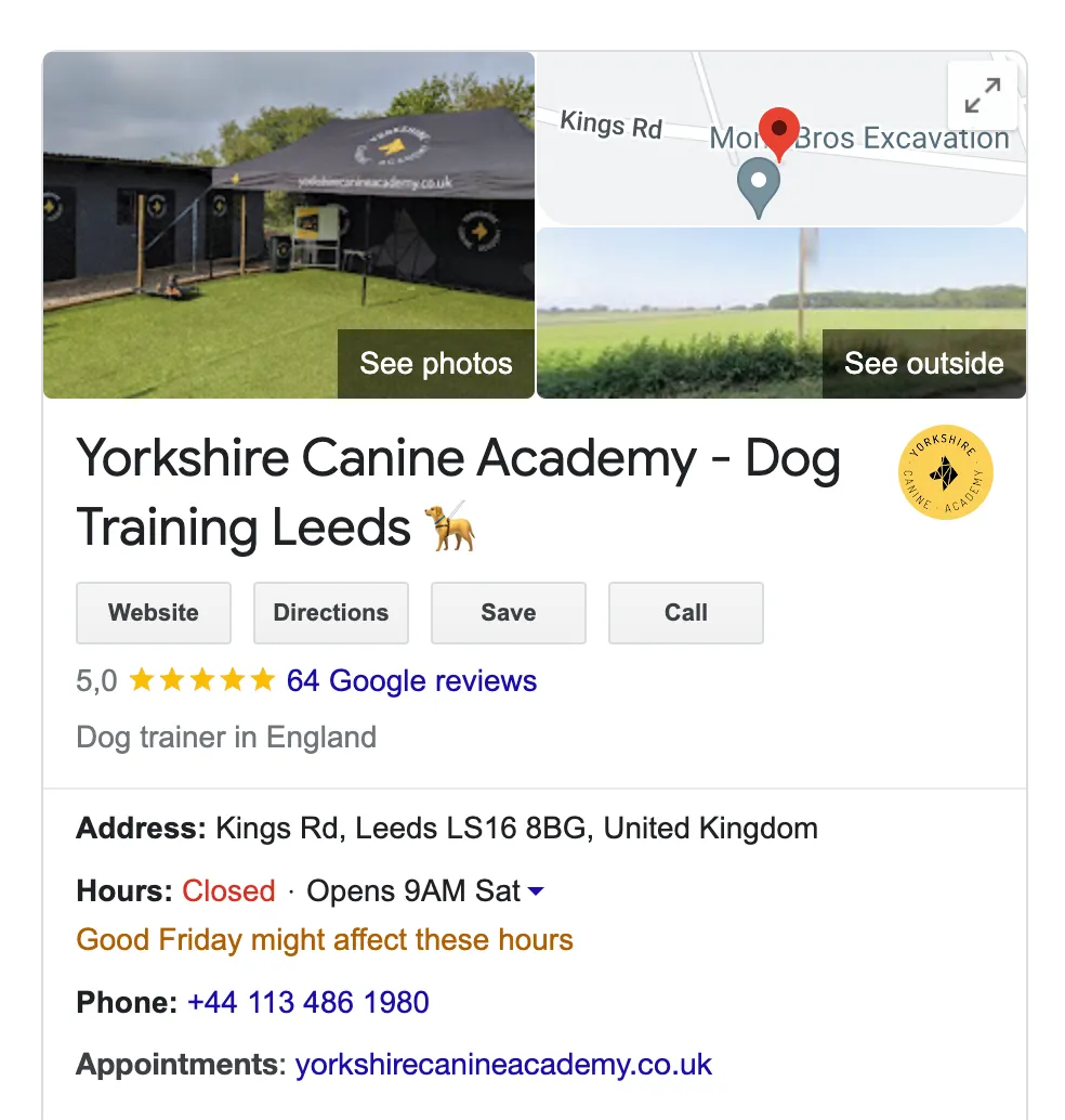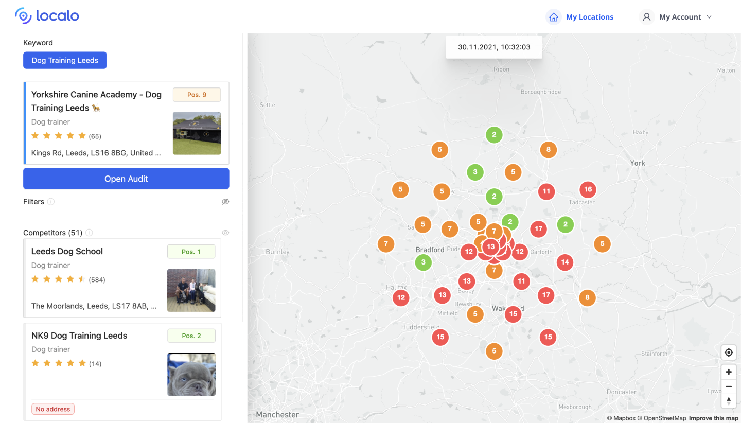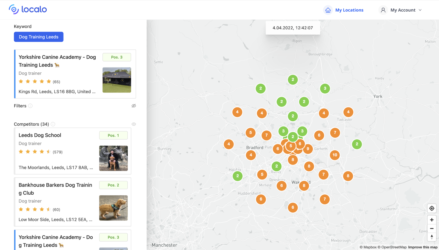 Localo provided Yorkshire Canine Academy with unrivaled data on our performance, competitors, and improvement information on our listing. This insight allowed us to easily develop a comprehensive strategy for your business listing, allowing us to implement changes and track performance across our local area.